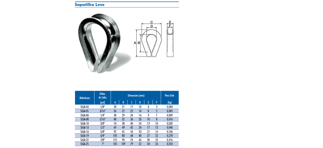 cordas. A medida da sapatilha deve ser compatível com o diâmetro do cabo. Fabricadas