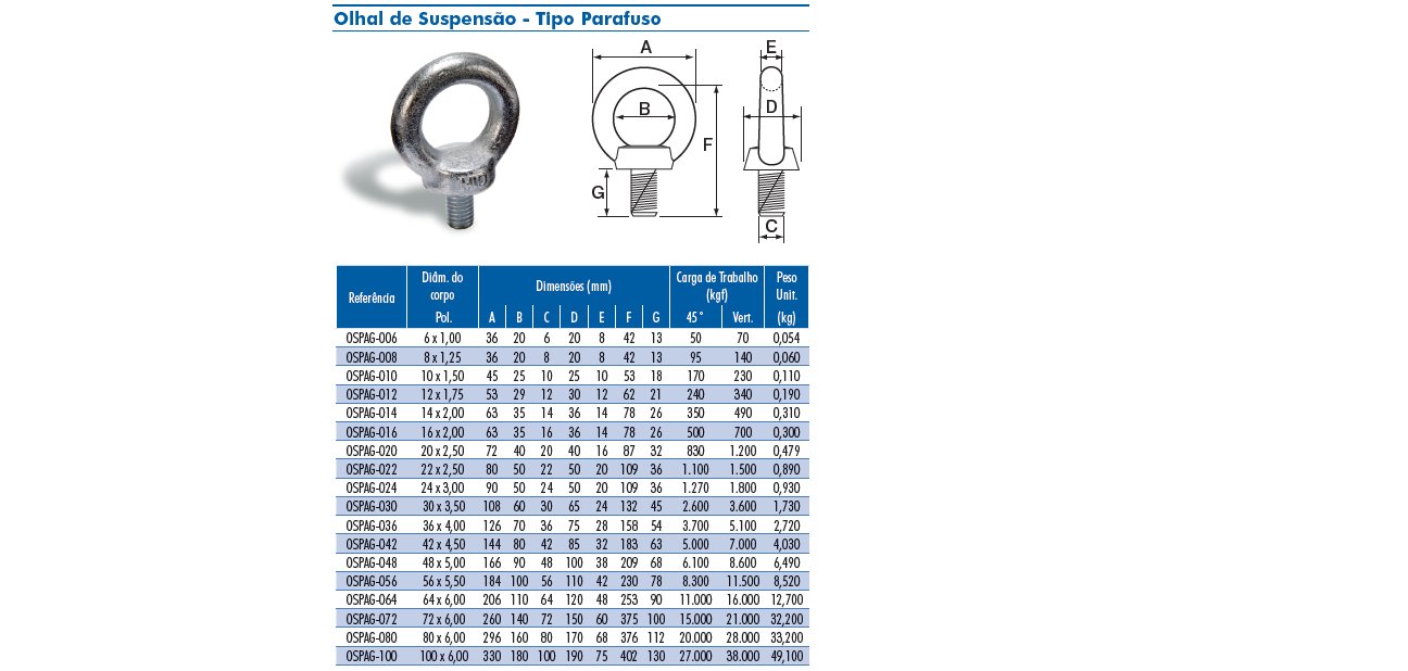 cargas e equipamentos em geral. Fabricados e testados conforme a Norma DIN 580,